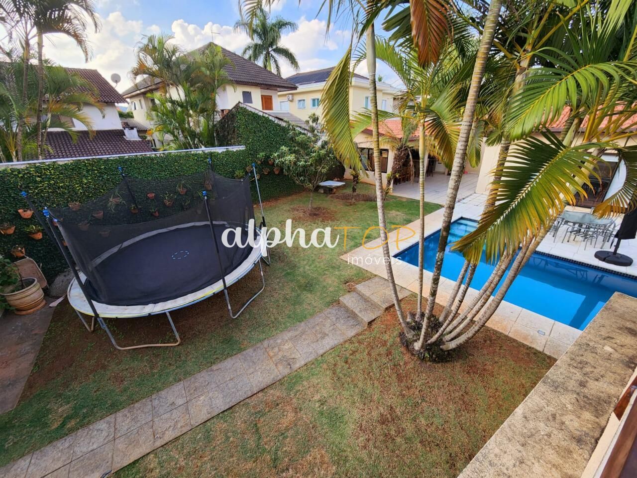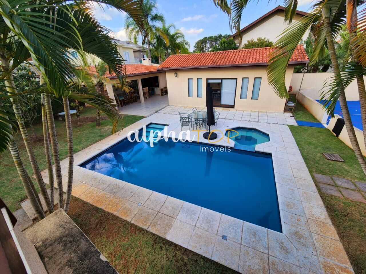 Conheça esta elegante residência de quatro dormitórios, sendo duas suítes, cinco banheiros, com uma área total de 1038m². A sala com pé direito duplo é a escolha perfeita para quem busca conforto e sofisticação. Sua posição solar privilegiada proporciona iluminação natural durante o dia todo para a piscina e quadra poliesportiva privativas , enquanto o aquecimento a gás, ar condicionado e energia solar garantem o máximo de conforto em todas as estações.